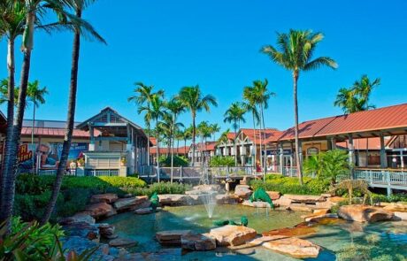 The 55-acre shopping center destination features 100 specialty stores, restaurants, and cafés. Guests can stroll the one-level covered walkways surrounded by a million-gallon waterscape and lush tropical foliage.